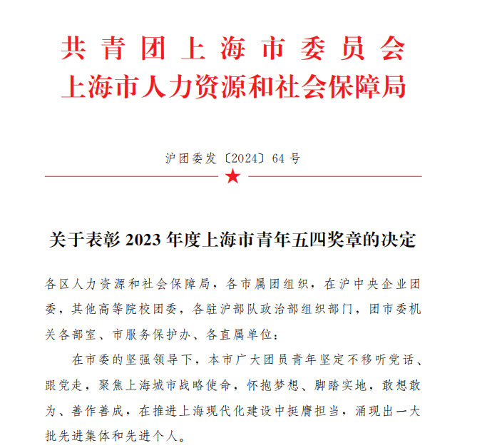 为树立典型、表彰先进,集中展现在习近平新时代中国特色社会主义思想指引下上海青年服务国家战略、助力高质量发展的精神风貌,共青团上海市委员会、上海市人力资源和社会保障局联合开展上海市青年五四奖章评选活动。经基层推荐、层层选拔,上水公司洪东亮喜获上海市青年五四奖章荣誉,截至目前上水公司已有5人获得该荣誉。