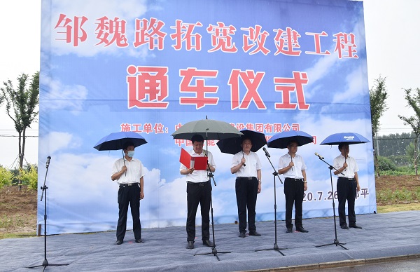 中化学交通建设集团第四工程有限公司介绍了邹魏路建设的基本情况。并表示,在市委、市政府的正确领导和各参建单位的共同努力下,邹平市重点工程项目邹平市邹魏路拓宽改建工程项目今天正式建成通车,中化学交通建设集团将认真总结邹魏路的建设经验,始终秉承“交付精品工程 建设美好未来”的核心价值观,继续贡献中化学交建人的智慧和力量,把更多的优质精品工程奉献给邹平人民,为邹平市交通事业的发展作出更大贡献。